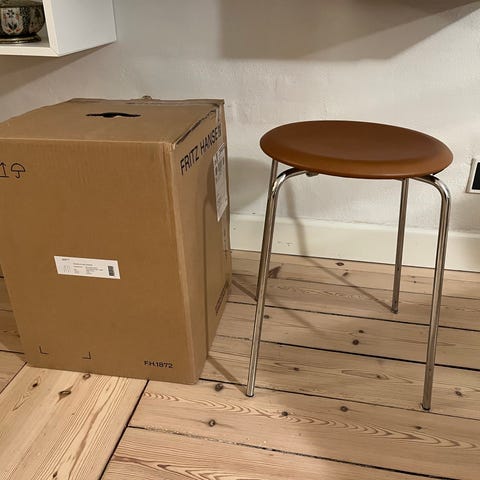 Smuk Arne Jacobsen DOT skammel i flot stand. den originale model fra 1950’erne med 3 ben. Smuk glød i træet, fine messing ‘knapper’ på sædet og selvfølgelig solid og holder en evighed. En ægte designklassiker som er enkel og smuk til soveværelse, entré, stue eller sommerhus. Original Fritz Hansen stempel under sædet. Kan leveres