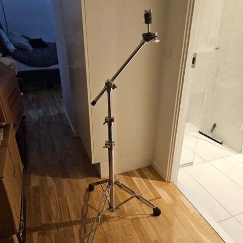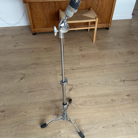 Lille og let bækkenstativ med trebenet fod og gummifødder. Stativet er højdejusterbart med flere låsepunkter og har øverste holder med filt og vingemøtrik til montering af bækken.