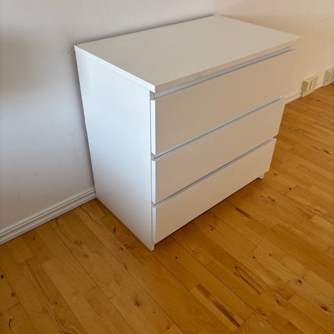 IKEA kommode med 2 skuffer i hvid. Kommoden har to store, brede skuffer.