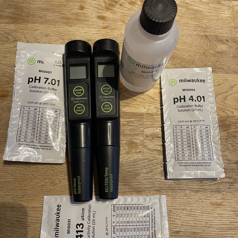 Milwaukee pH54 pH-måler i penform. Værktøj til måling af pH-værdi i væsker. Vandtæt konstruktion med digitalt display og betjeningsknapper på fronten. Leveres med brugermanual og kalibreringsbuffer pH 4,01 til justering af måleinstrumentet. Egnet til kontrol af pH i f.eks. akvarier, hydroponics, pool eller laboratoriebrug, hvor præcis pH-måling er nødvendig.