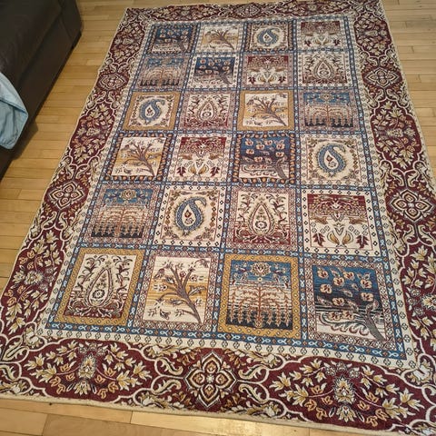 Tæppe i viskose - glansfuldt og silkeagtigt. 300 x 200 gråbeige tæppe.