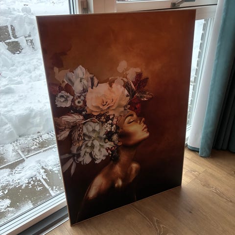 Billede på lærred, med Sofa med himmel i værelse, Bahne. Super flot billede med illustration af stue i hyggelige og varmt miljø. Størrelse 38 x 30 cm. Gode ophængs kroge.