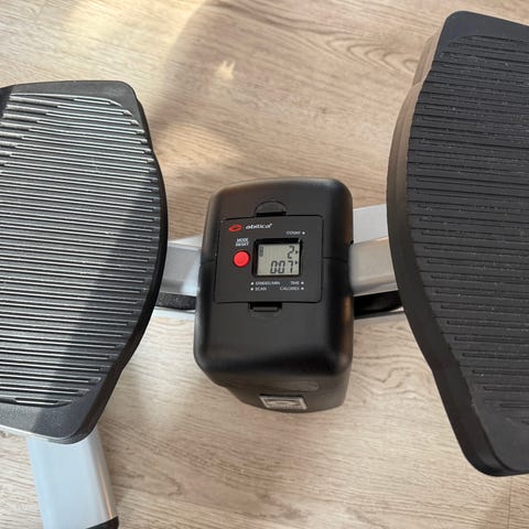 Abilica MiniStep 2.0 stepmaskine med elektronisk display. Kompakt steptræner til brug indendørs, egnet til konditionstræning og styrkelse af ben og balder. Udstyret med skridsikre trædeflader og lille computer, der kan vise træningsdata som tid, antal step og anslået kalorieforbrug.
