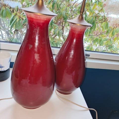 2 store Kinalamper designet af Bent Karlby og produceret af LYFA. Komplette med top og bund i massiv messing og med intakt bundblas