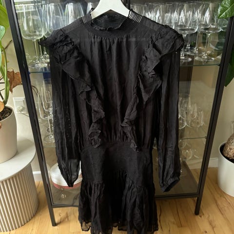Designers Remix sort, lang kjole i str. 34. 100% recycled polyester. Længde fra ryggen og ned: ca. 117 cm. Style: Valerie Long slit dress. Som ny.