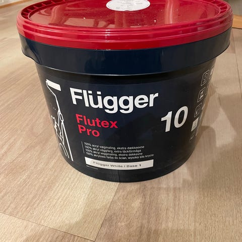 Flügger Flutex Pro 5 vægmaling 10 liter. Akrylbaseret indendørsmaling velegnet til vægge og lofter i tørre rum. Spand med 10 liter, mærket S0500-N (lys neutral hvid nuance). Malingen er beregnet til påføring på puds, beton, gips, tapet og tidligere malede overflader efter korrekt forbehandling. Produktet er vandbaseret og kan påføres med rulle eller pensel. Egnede anvendelsesområder er blandt andet opholdsrum, soveværelser, gange og lignende indendørs rum.