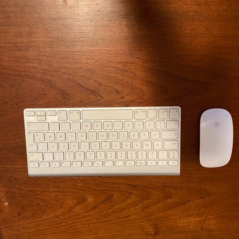 Apple Magic Keyboard og Magic Mouse trådløst tastatur og mus i hvidt design. Tastaturet er et kompakt, lavprofil tastatur med numeriske og funktionstaster i fuld størrelse. Det har flade taster og aluminiumsramme. Musen er en trådløs Apple Magic Mouse med touch–overflade og optisk sensor. Dansk tastatur. Sælges samlet