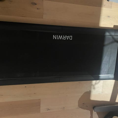Darwin Fitness løbebånd med digitalt display. Løbebåndet har indbygget LED-display, der viser blandt andet distance og tid. Det betjenes via en fjernbetjening til hastighedsjustering. Velegnet til gang og løb indendørs, f.eks. i hjemmet eller på kontoret. Kompakt model, der kan placeres på gulvet foran et skrivebord eller i et træningsområde.