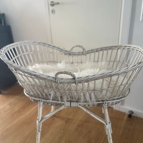 Sød vugge i flet med hjul.