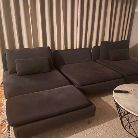 Find stand, let brugt, Söderhamn med Bemz-betræk og ben. Kun de ternede puder følger med. Betræk i uldblanding. Afhentes i Rødovre ved Damhussøen.