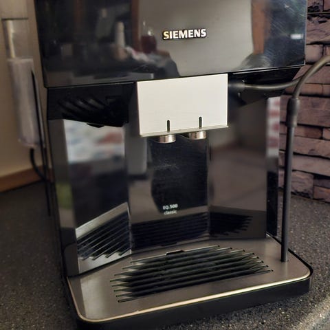 Sælges: Siemens EQ500 kaffemaskine. Maskinen er ny-serviceret, fuldt funktionsdygtig og står klar til brug.