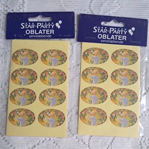 100 blandede ark med stickers sælges billigt, da tapen på bagsiden er tørret ind.