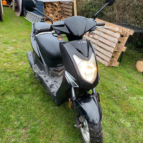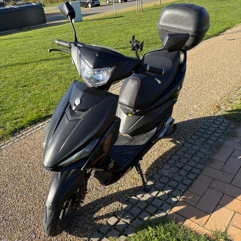 Comet hiper 50 4T EFI scooter i sort fra 11/23’ Mindre scooter med trinbræt og sæde med rød syning. Egnet til kørsel i by og kortere afstande. Sort karrosseri med plastkåber og standard scooterudstyr som fodstøtte, baglys og forlys. Kun 1 ejer. Altid stået i carport. Nypris 12999 kr.
