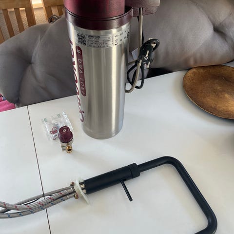 Beholderen er blevet ombyttet december 25’ og der fik armaturet også ny elektronik fordi ledningen knækkede ved afmonteringen.