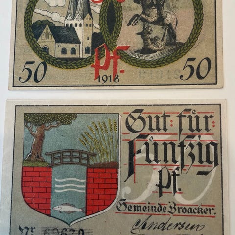 Notgeld sedler 50 Pfennig Dynt og Jünth