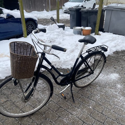 Pedalbremse bag , ringeklokke. Støtteben aluminium justerbar, håndbremse,fodbremse. Ingen fejl næsten ligesom ny efter service. Det mangler ingenting