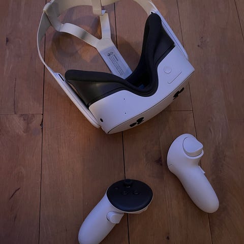 Meta Quest 3 taske i grå filt-lignende overflade. Tasken er formstøbt indvendigt med plads til Meta Quest Pro-headset og tilbehør. Indersiden har en hård skal, der beskytter udstyret under opbevaring og transport. Tasken lukkes med lynlås og har bærestrop for nem håndtering. Velegnet til opbevaring og transport af Meta Quest 3 VR-udstyr.