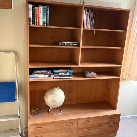 Med forede udtræksskuffer til eks sølvtøj i den ene side af skænkdelen (se foto)