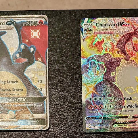 Pokémon Charizard VMAX samlekort. Kortet er et holografisk Pokémon TCG-kort med motiv af Charizard i VMAX-udvikling. Standard Pokémon-kortstørrelse, egnet til samling, opbevaring i mapper eller hard sleeves samt brug i Pokémon Trading Card Game-dæk.