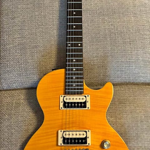 Ibanez Mikro og Marshall MG15 DFX forstærker. Komplet set med kabel, original Ibanez gigbag, guitarholder og Sennheiser HD 380 Pro hovedtelefoner. Guitaren er nyopstrenget, gigbag er som ny og har kun været brugt til opbevaring hjemme. Guitaren har en lakskade men fungerer perfekt. Stik til både almindelig jackstik og minijackstik så man kan køre et track ind i forstærkeren og spille hen over det samtidigt med at man hører både track og sig selv i headsettet. Rart når der skal øves uden at involvere resten af husstanden :-)
