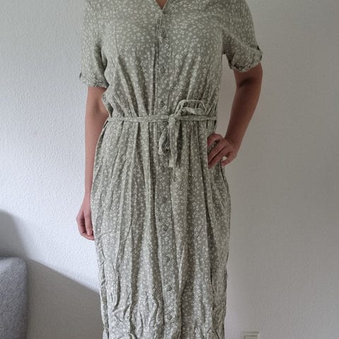 Super fin blå kjole med prikker. Falder flot. Brugt få gange.