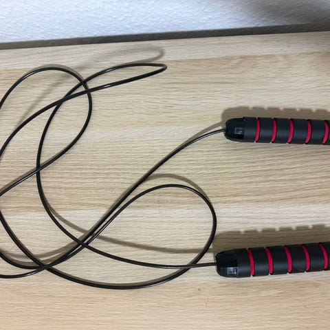 Brugt, men i rigtig fin stand – ingen knuder, ingen revner i snoren eller håndtagene. Fungerer perfekt til hjemmetræning, cardio, fitness eller bare lidt motion derhjemme.