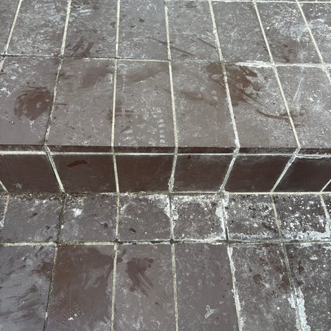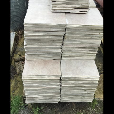 Rester/afskær fra 60x60 keramiske klinker i lys beige. Der er hvad man ser på billederne. Bortgives gratis - skal afhentes.