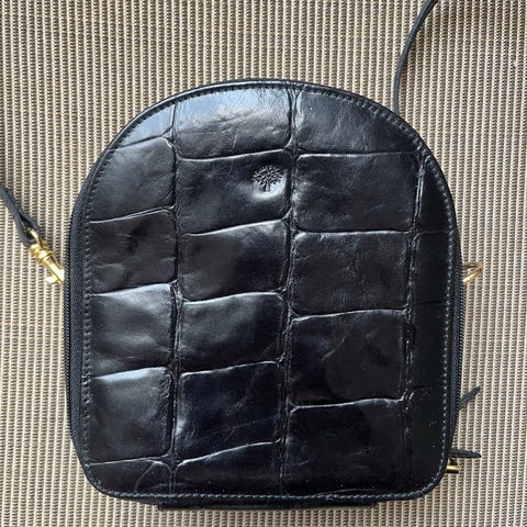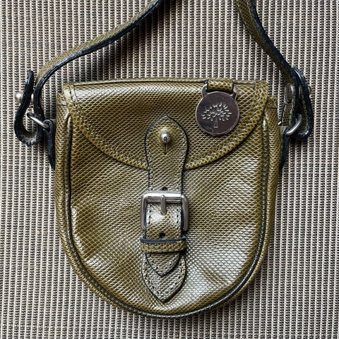 Indvendigt er der det klassiske Mulberry foer med små træer, en lynlåslomme samt åbne rum til mindre genstande.