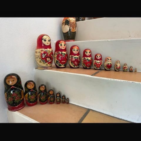 Babusjka håndmalet russiske træ figurer i fin stand.