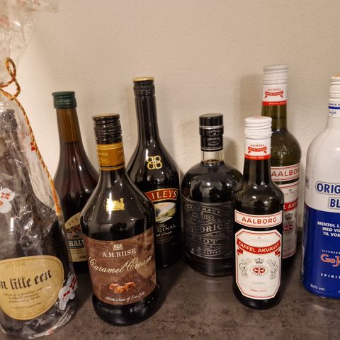 Blandet parti spiritus/likør. Rester. Alt har været åbnet – se billeder.