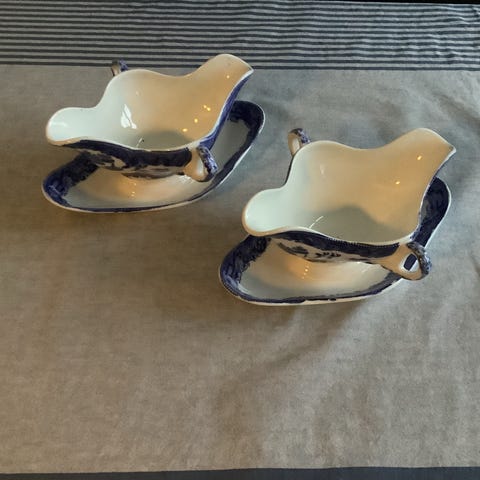 Wedgwood Blue Willow porcelæn smørskåle blå-hvidt mønster