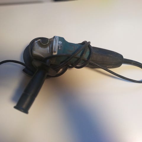 Falke vinkelsliber i gul farve med sort håndtag. Leveres i hård plastkuffert med bærehåndtag. El-drevet model med ledning, egnet til skære- og slibeopgaver i metal og andre materialer afhængigt af monteret skive. Kufferten giver mulighed for opbevaring og transport af maskinen og tilbehør. Specifik modelbetegnelse og tekniske data som effekt (W) og skivediameter fremgår ikke tydeligt af billederne.