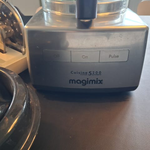 Magimix Blender 4 blender med kompakt motorenhed i sølvfarve. Modellen har drejeknap til hastighedsindstilling samt knapper til stop, auto og pulse-funktion. Kommer med Mimi-hakker. Den er aftagelig og har låg samt aftagelig knivenhed i metal. Den store glaskande medfølger ikke, men kan købes for ca.400kr. Låg og bund til den store glaskande medfølger. Nypris for blender 1800 og 400 for minihakker.