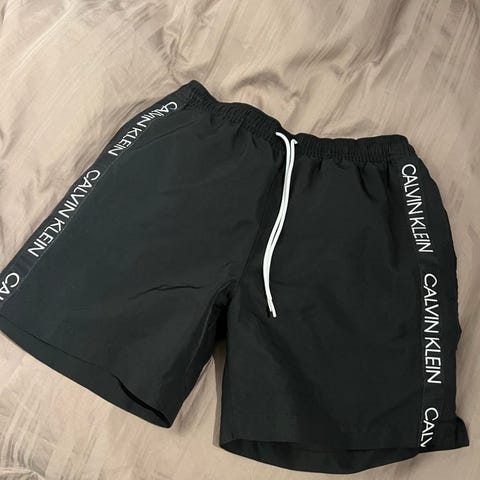 Calvin Klein shorts til herre i sort polyester i størrelse M. Shortsene har elastisk talje med snøre og sidelommer. Indvendigt netfor giver ekstra komfort, og materialet er let og hurtigtørrende, egnet til hverdagsbrug eller strand- og badeaktiviteter.