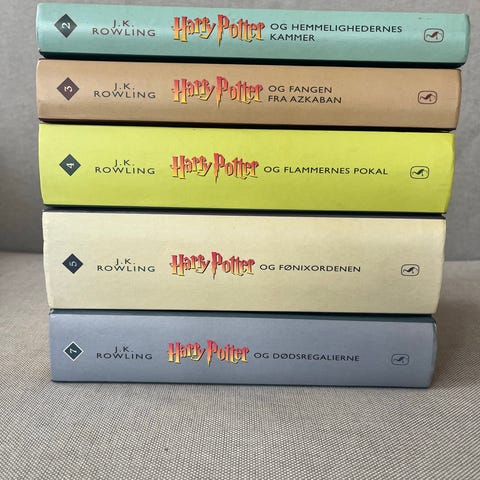 J.K. Rowling Harry Potter bogsæt på dansk i hardback. Sættet omfatter seks bind fra serien med titlerne: "Harry Potter og De Vises Sten", "Harry Potter og Hemmelighedernes Kammer", "Harry Potter og Fangen fra Azkaban", "Harry Potter og Flammernes Pokal", "Harry Potter og Fønixordenen", "Harry Potter og Halvblodsprinsen" samt “Harry Potter og Dødsregalierne”.
