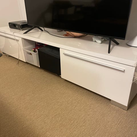 Tv-bordet har et lille hak på den ene kant, hvilket også kan ses på sidste billede.