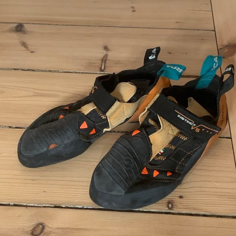 Helt klassisk er de købt for små. evolv sko har åbenbart et andet størrelsesskema end de fleste klatresko-fabrikanter. Man skal vælge en sko der er lige omkring ens skostørrelse i stedet for at gå ned i størrelse.