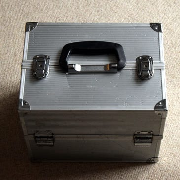 Lille smart værktøjskasse. Ca 35 cm lang, 18 cm bred og ca 14 cm høj . Udvendige mål. Ikke brugt .