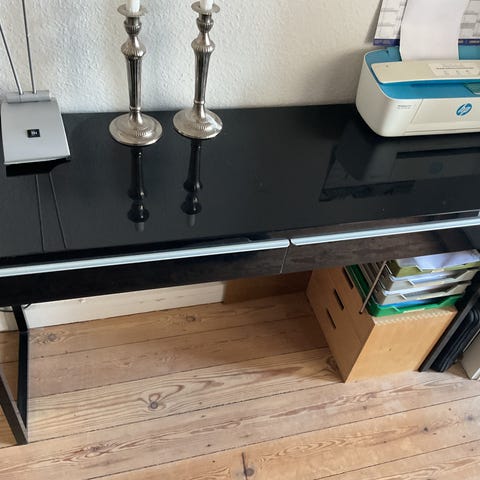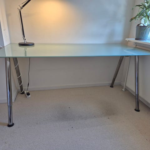 Hvid skrivebord med glasplade