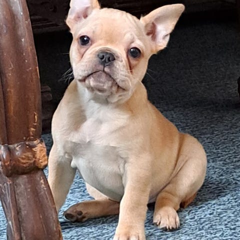 Hun er fra d. 22. august 2025. Er en blanding mellem Fransk Bulldog og Puddel (opdrætter har oplyst at hun højst ender med en vægt på 10 kg.)