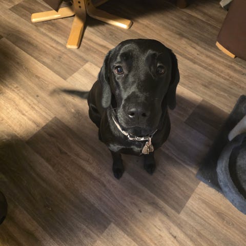 Hun er vant til at hendes madskål står fremme fra om morgenen og bliver først taget væk kl. 17 (så er der ingen risiko for uheld om natten) 😂