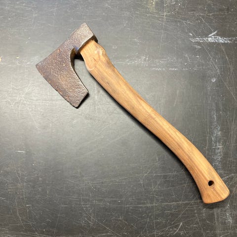 Gammelt øksehoved med “5” stempel