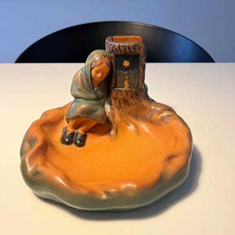 P. Ipsens Enke Keramisk Figur af Lille Pige med Skovl i Grøn Glasur No. 889