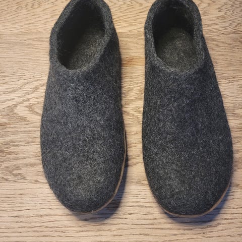 Uld hjemmesko i str 44. Mørkeblå med gummisål
