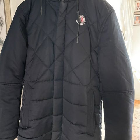Lækker tyk men let jakke med aftagelig hætte og mange skjulte lynlåslommer og varme strikmanchetter ved håndleddene, i gråmeleret vind- og vandtæt og åndbart stof. Der er et meget lille diskret (ca. 2 cm) blåt logo på venstre overarm deraf prisen! Nypris 1500 kr. Sender gerne!