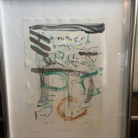 Sæt med 5 indrammede kunsttryk af Henrik Have. Motiverne er abstrakte og semi-abstrakte kompositioner, herunder blandt andet et palmelignende motiv og organiske former i grønne og rødlige nuancer. Hvert tryk er monteret med passepartout i ensartede, lyse rammer med metal- eller sølvfarvet kant. Egnet til ophængning samlet som serie eller enkeltvis i stue, gang eller kontor. Størrelse på tryk og rammer fremgår ikke præcist af billederne, men formatet er mindre vægbilleder i ens størrelse.