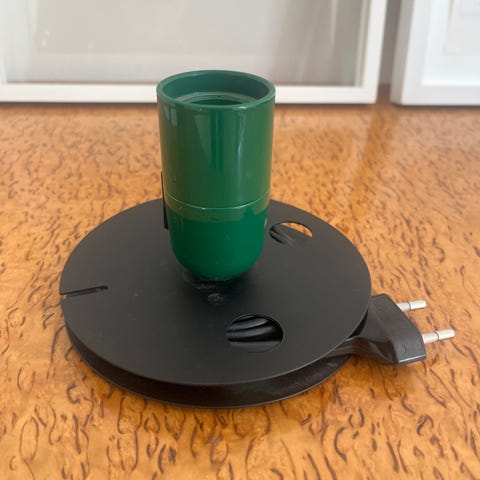 Flos bordlampe designet af Achille Castiglioni. Lampen har en rund fod i metal og en stor, klar glaskuppel med synlig lyskilde. Soklen er i en markant orange farve, og lampen tilsluttes med almindelig stikprop. Velegnet som bord- eller stemningsbelysning i stue, soveværelse eller kontor.