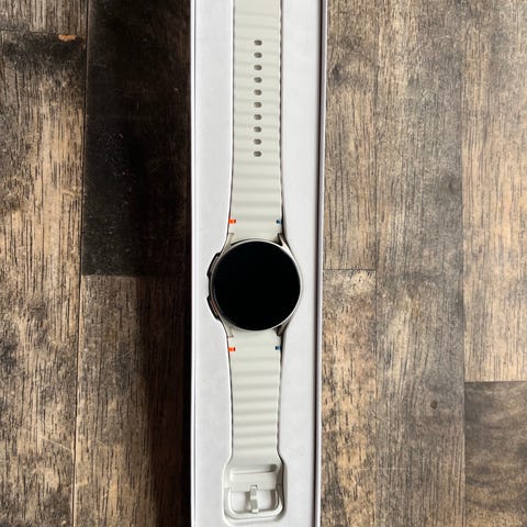 Helt ny, uåbnet., fik den i gave . Den er str 44 mm. Samsung Galaxy Watch7 smartwatch i hvid farve. Uret leveres i original emballage fra Samsung. Smartwatchet har rundt urdisplay og hvid rem, som på billederne. Egnet til brug med kompatible smartphones til visning af notifikationer, aktivitetssporing og tidsvisning. Yderligere tekniske specifikationer fremgår af producentens oplysninger på emballagen eller Samsungs hjemmeside.