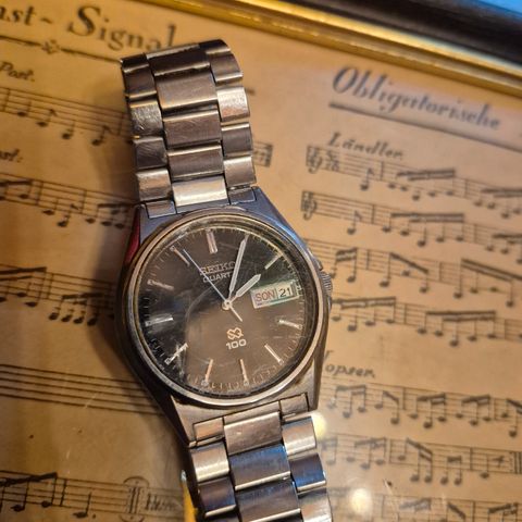 Seiko armbåndsur til unisex med sort urskive og tydelige hvide markeringer. Uret har analog visning med sekundviser og minutmarkeringer rundt i yderkanten af skiven. Bagkassen viser et mekanisk automatisk værk. Uret leveres med en NATO-rem i tekstil med grønne og røde striber. Velegnet som hverdagsur til både mænd og kvinder.