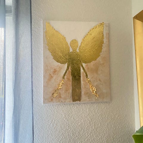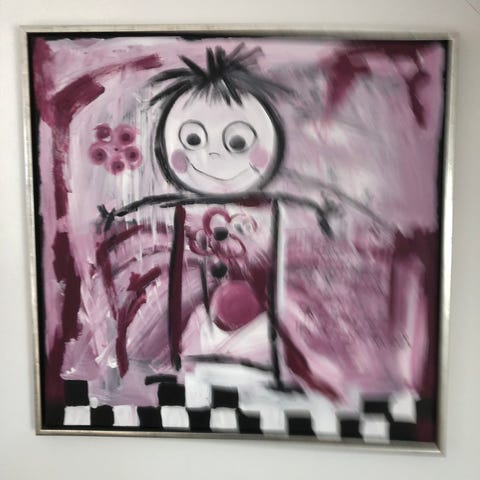 Maleri englefigur akryl på lærred pink